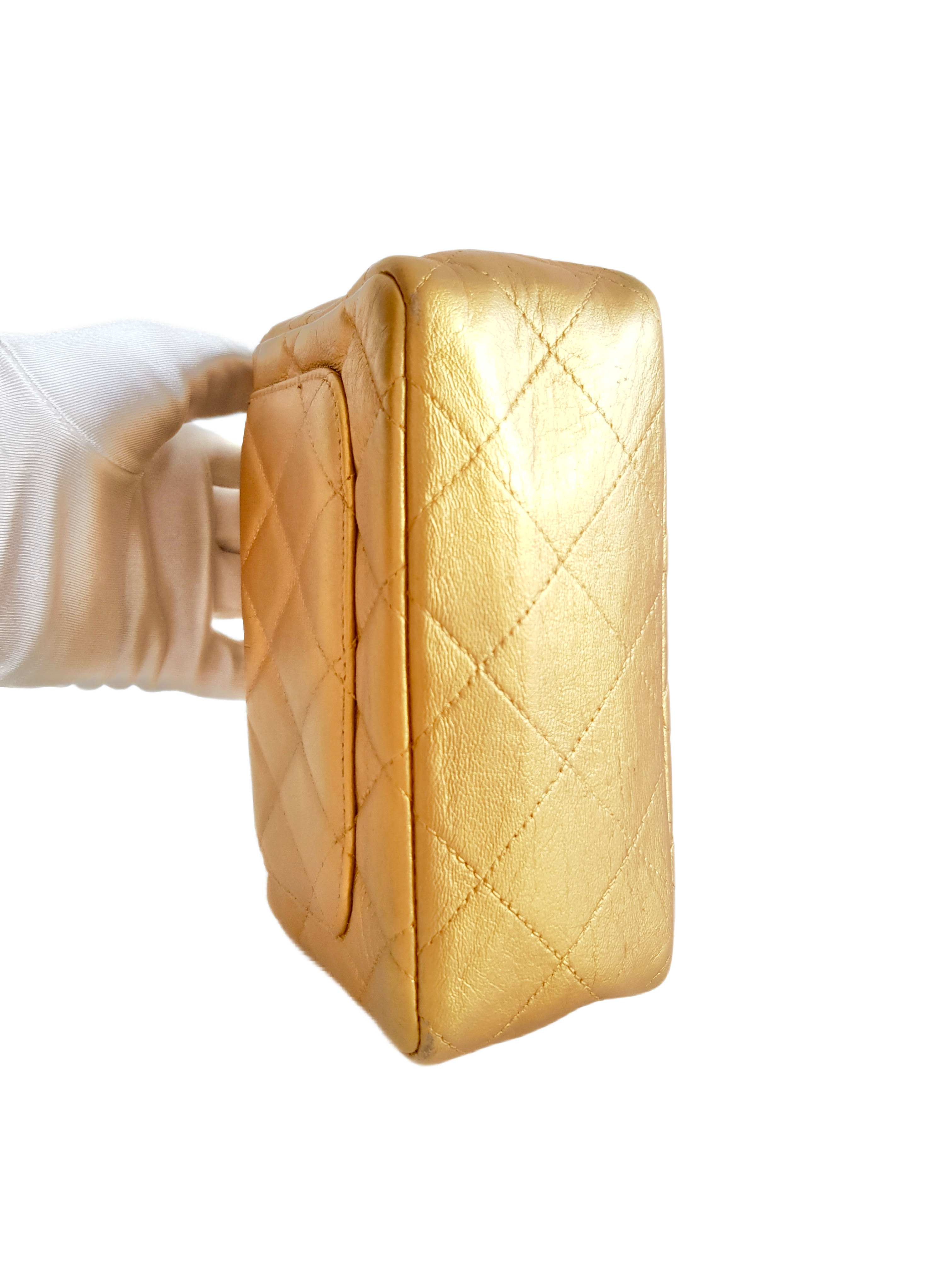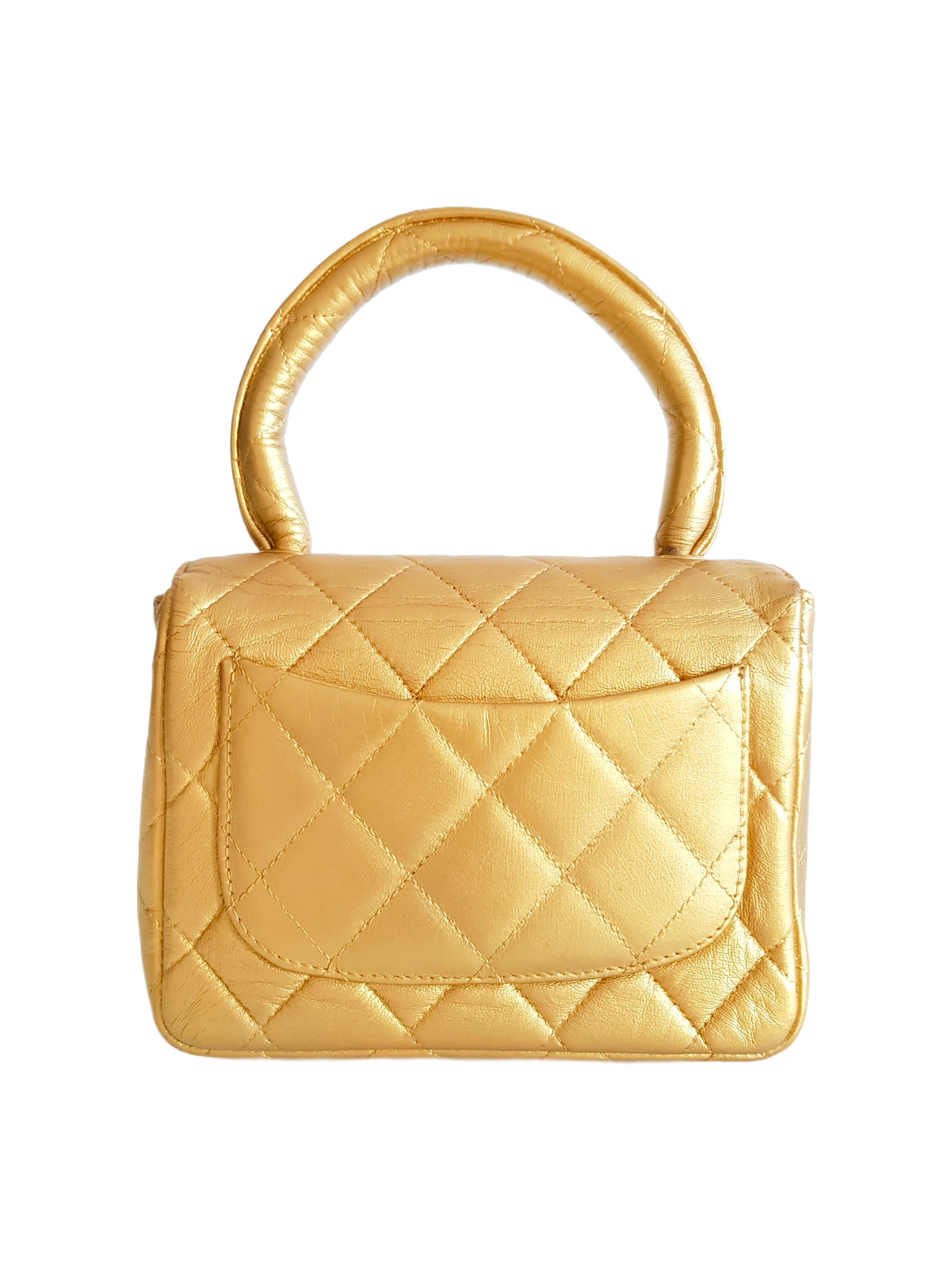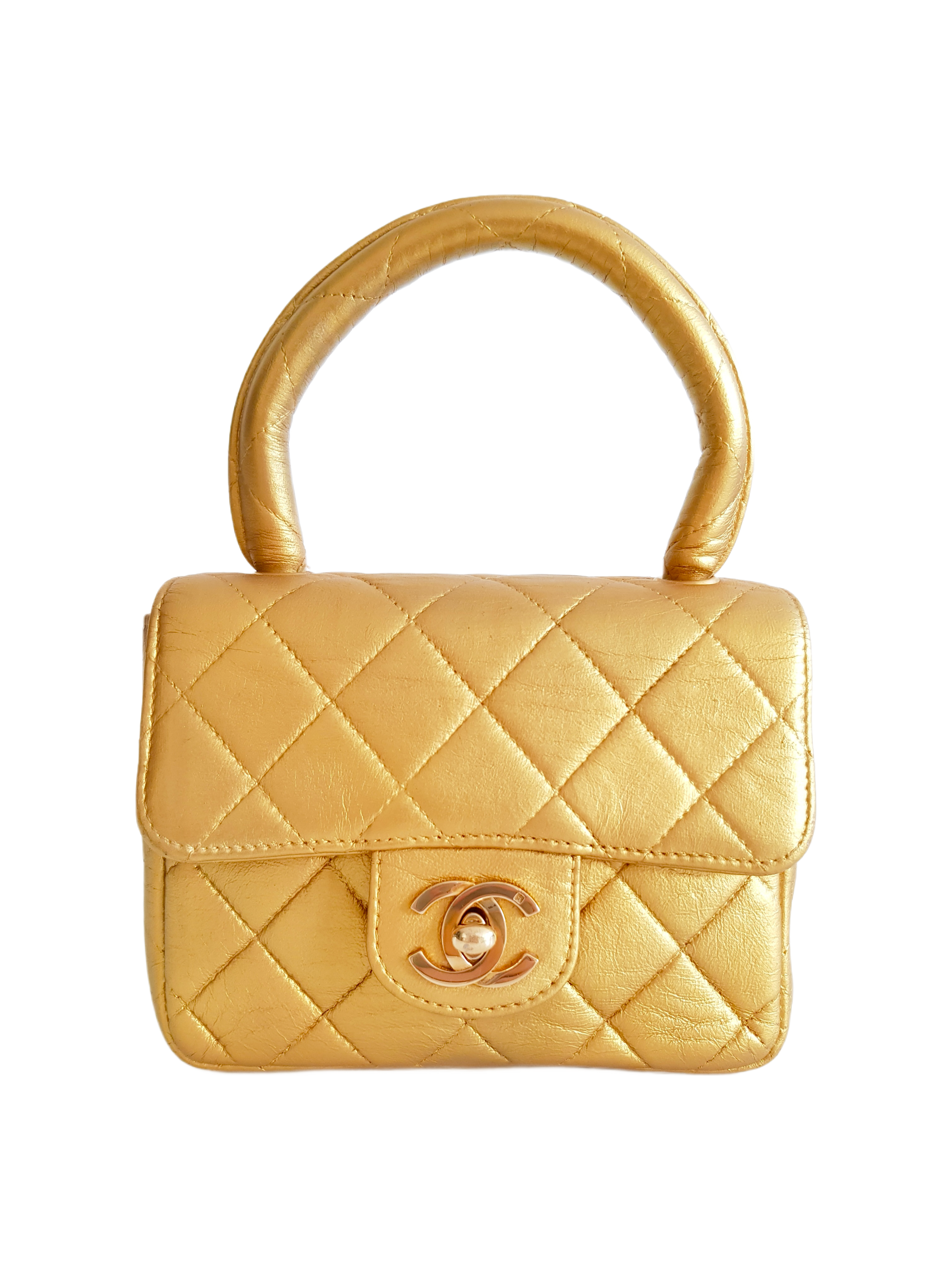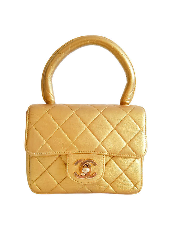 CHANEL FALL / WINTER 1994 (28 SERIES) GOLD QUILTED LEATHER CC TURNLOCK LOGO TOP HANDLE MICRO HAND BAG