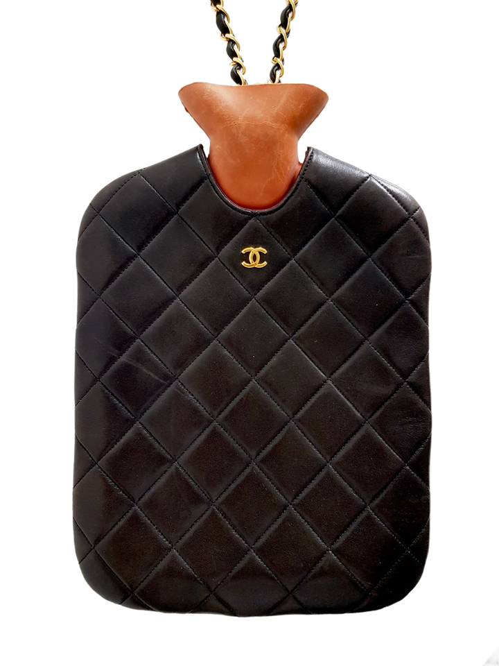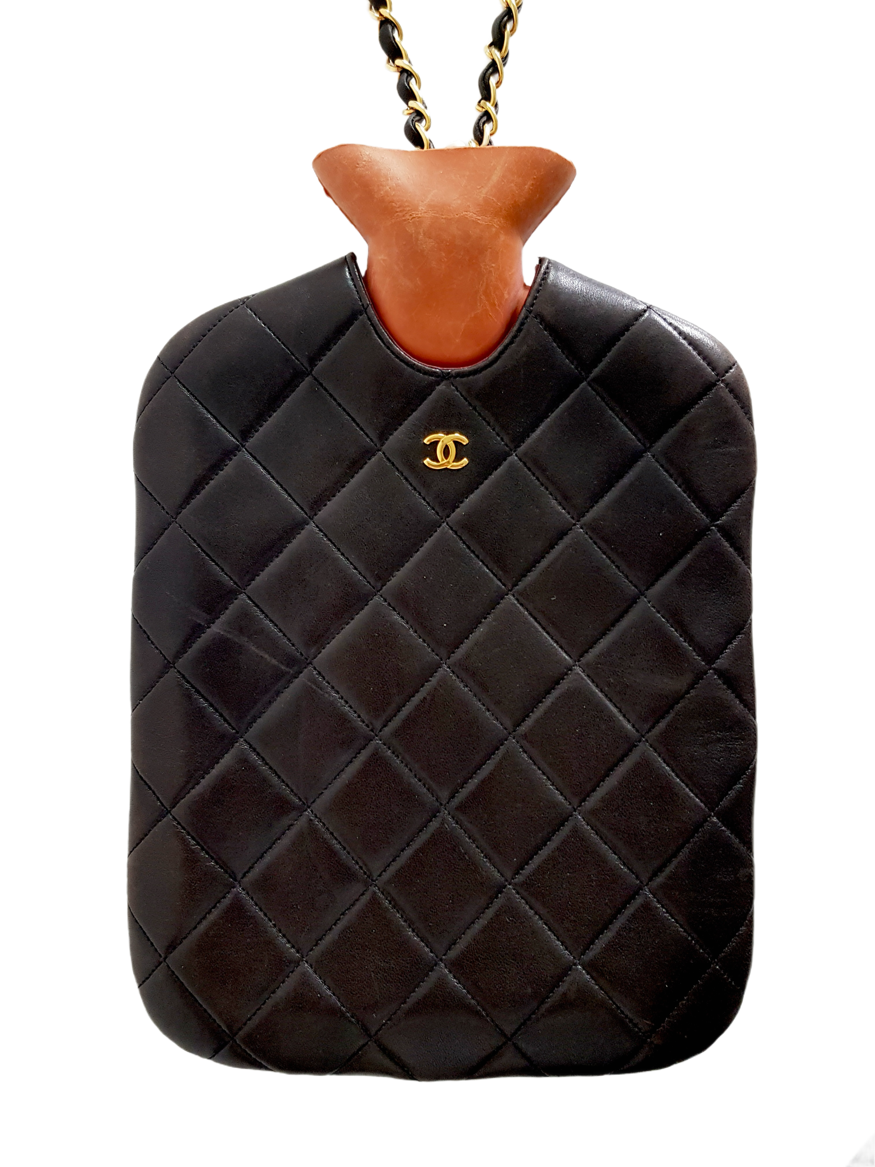 CHANEL FALL / WINTER 1993 BLACK QUILTED LEATHER HOT WATER BOTTLE HOLDER
