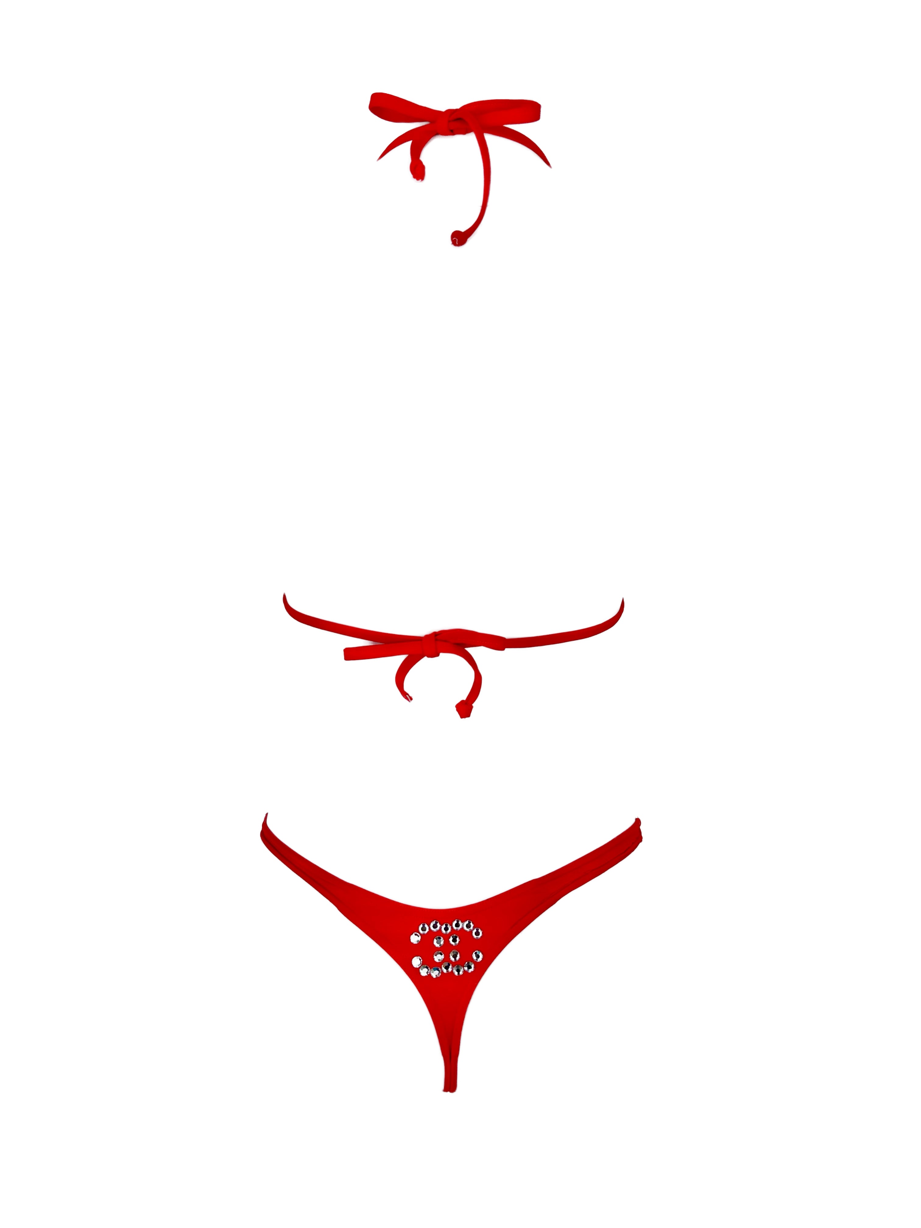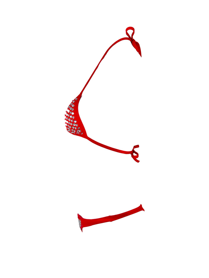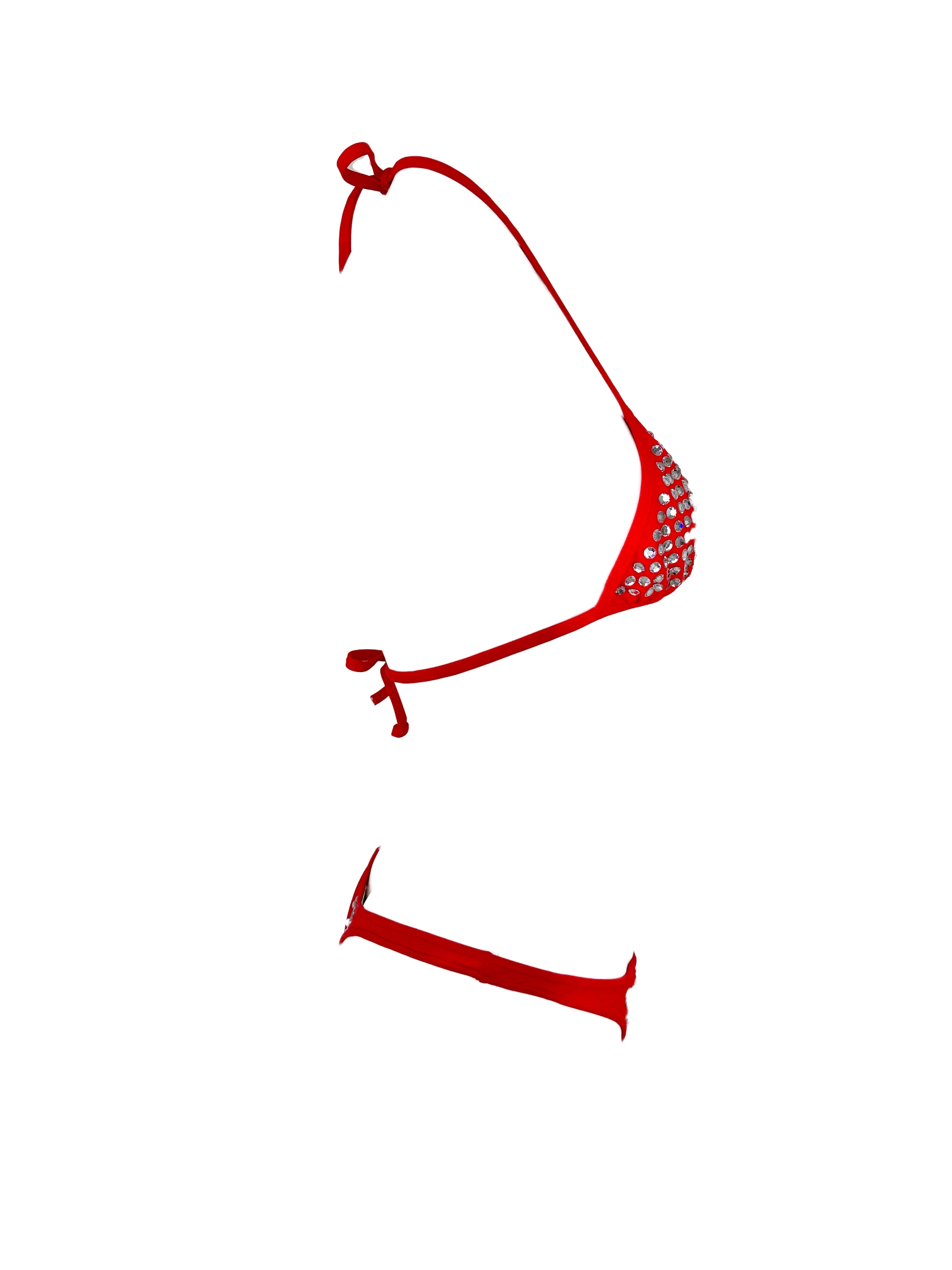 CHANEL SPRING / SUMMER 1995 'BARBIE COLLECTION' RED LYCRA SILVER RHINESTONE TWO PIECE BIKINI