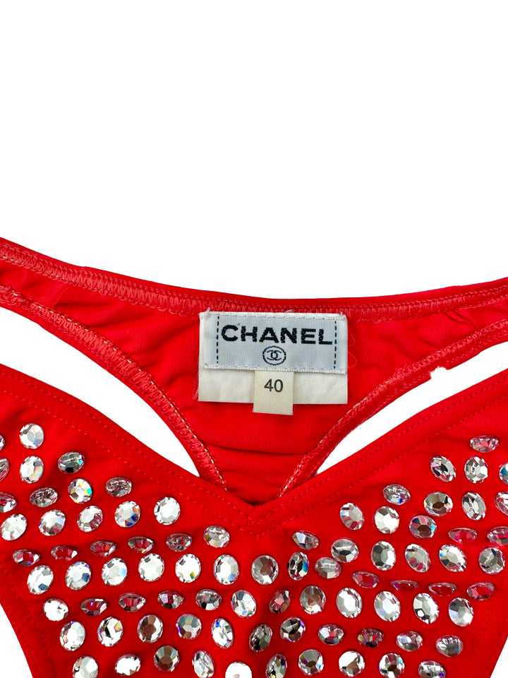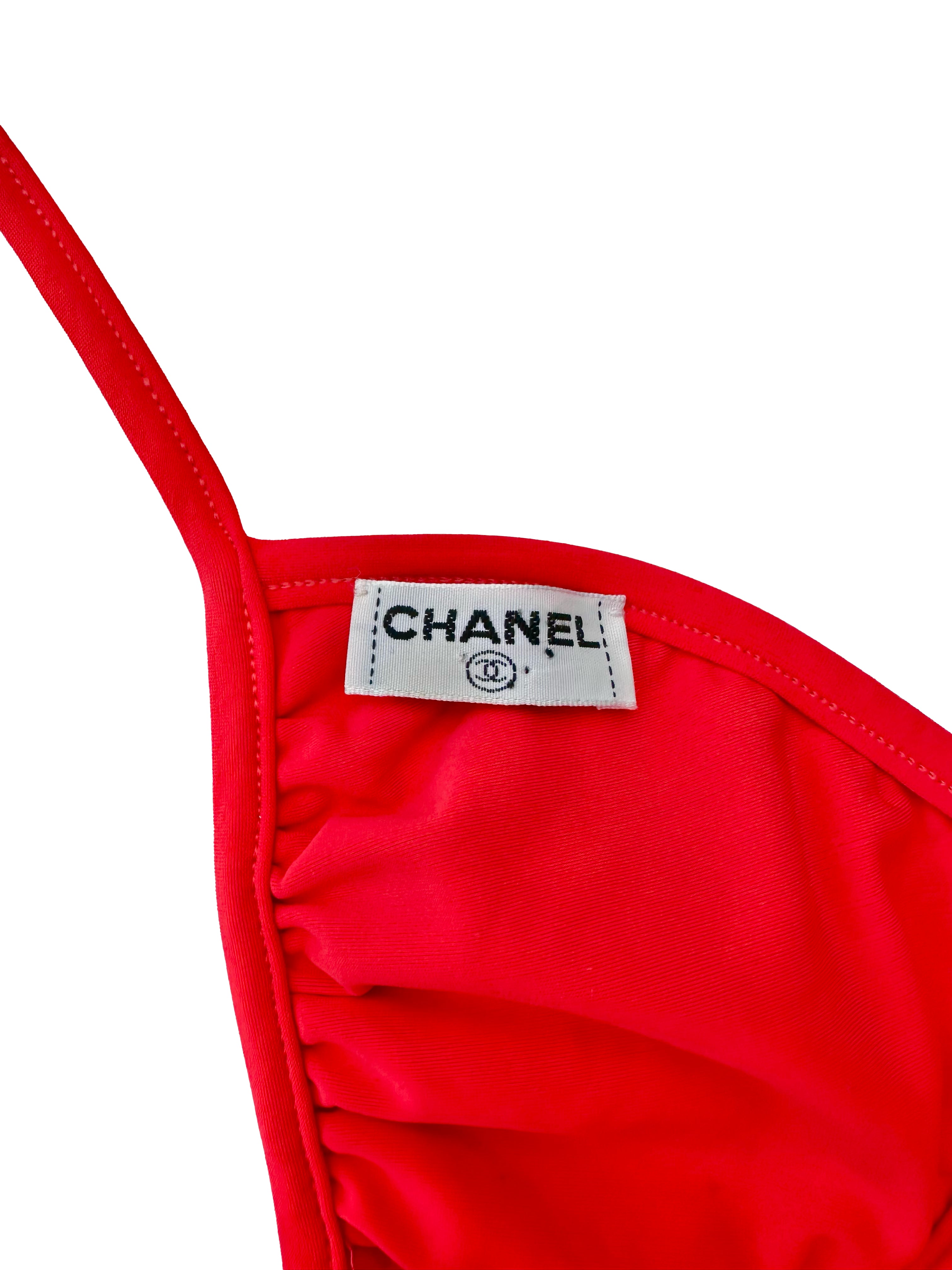Red stretch lycra bikini from Chanel’s Spring/Summer 1995 ready-to-wear runway show under the artistic direction of Karl Lagerfeld.